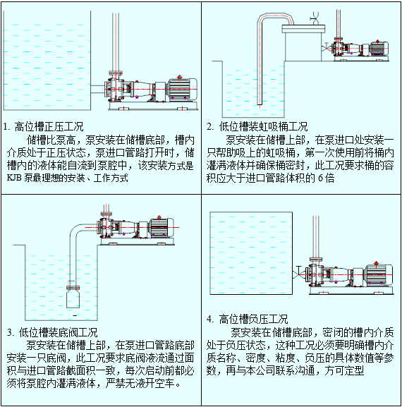 常見槽位工況下,泵的安裝示意說明